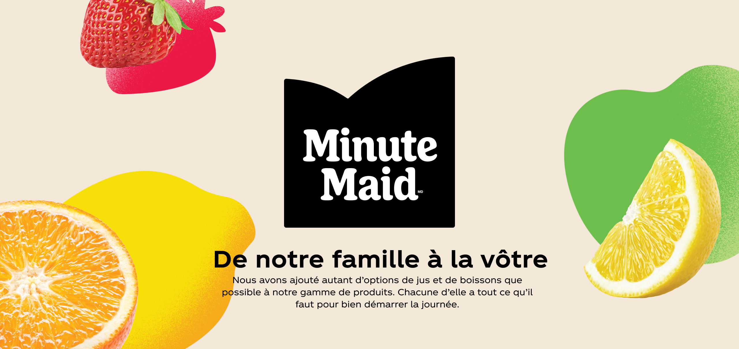 Depuis des générations, nous servons des jus, des limonades et des punchs aux fruits délicieux aux familles du monde entier. Après 75 ans d'existence et plus de 100 saveurs et variétés, Minute Maid est plus qu'une marque de jus. Nous sommes la référence.