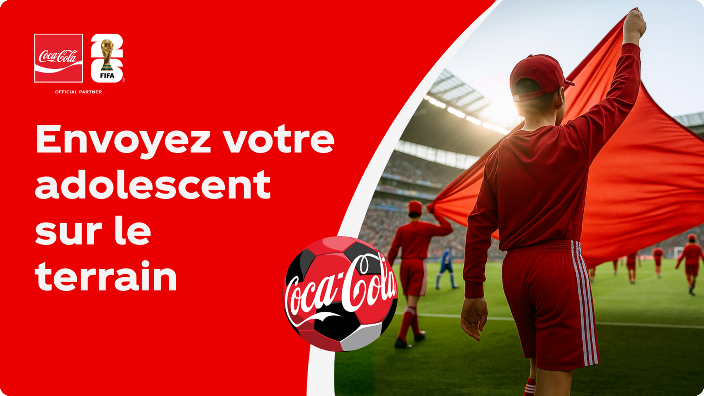 Pour être admissible à cette incroyable expérience de porte‑drapeau à la Coupe du monde de la FIFA 26™, au BMO Field (Toronto) ou à la BC Place (Vancouver), l’invité doit être âgé de 13 à 17 ans au moment du match. Un parent ou un tuteur légal doit soumettre la participation au nom de son adolescent et être disponible et disposé à l’accompagner le jour du match.