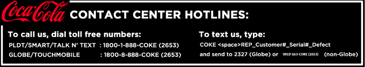 1. You may email us at: Social_CokePH@coca-cola.com; and/or