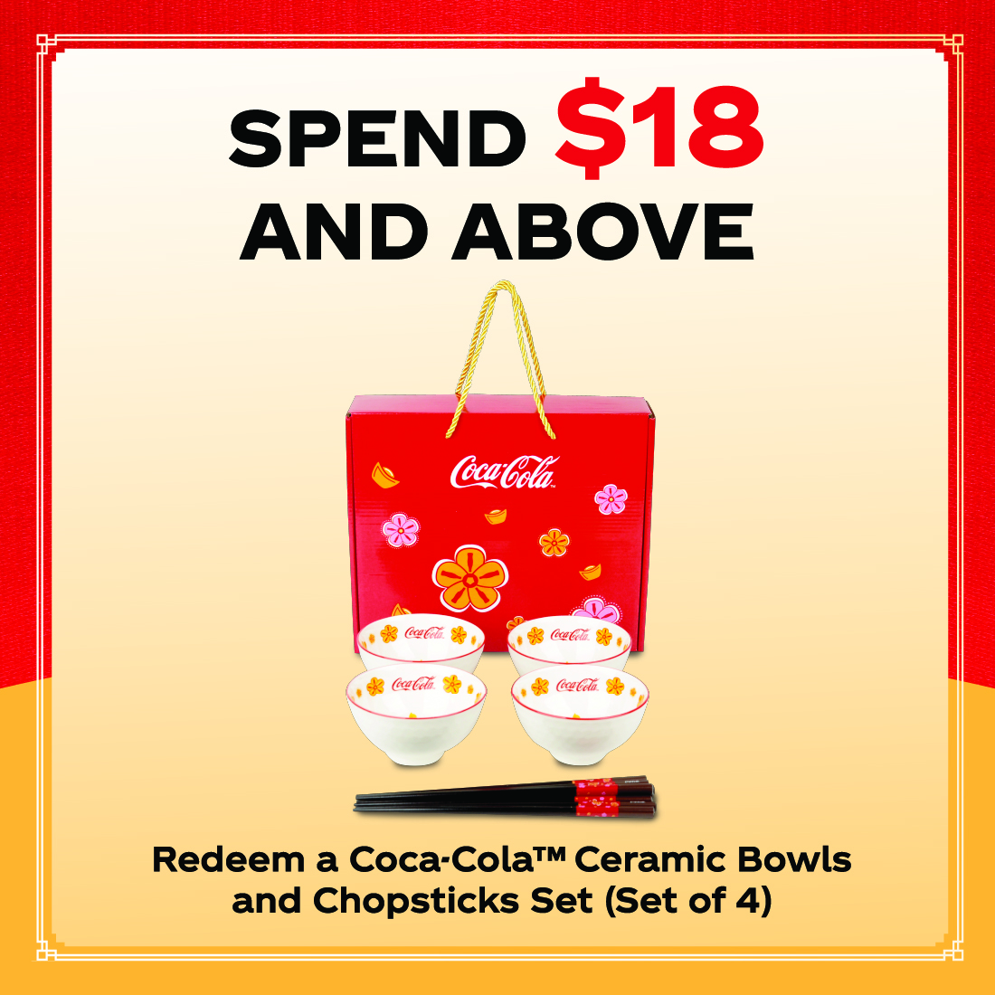 Coca‑Cola Rice Bowls and Chopsticks (Set of 4)