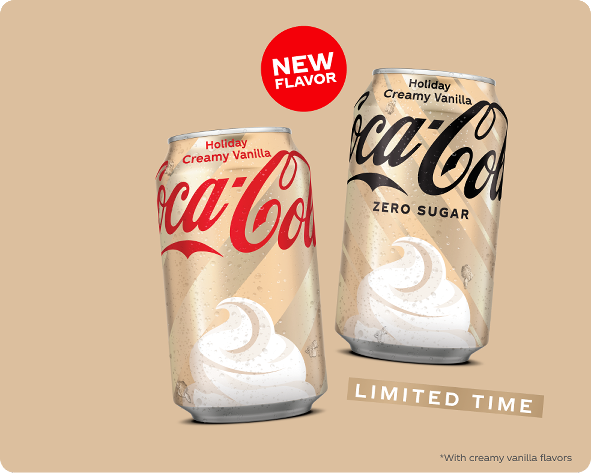 Looking for something new this holiday season? Coca‑Cola Holiday Creamy Vanilla and Creamy Vanilla Zero Sugar sodas deliver the Coca‑Cola taste you love with a smooth, creamy vanilla flavor. Pop open a bottle, pour it over ice, and let the festive vibes flow.