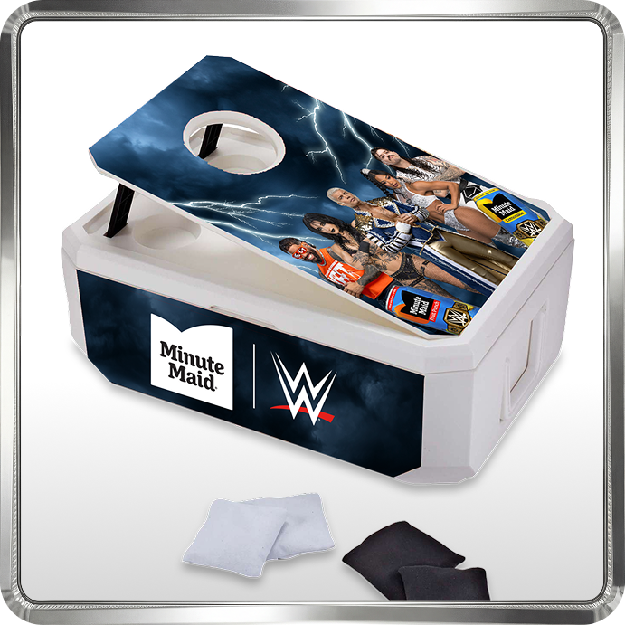 Enter for a chance to win a fan-approved prize, like a Minute-Maid x WWE cornhole cooler or a sleek branded pullover.